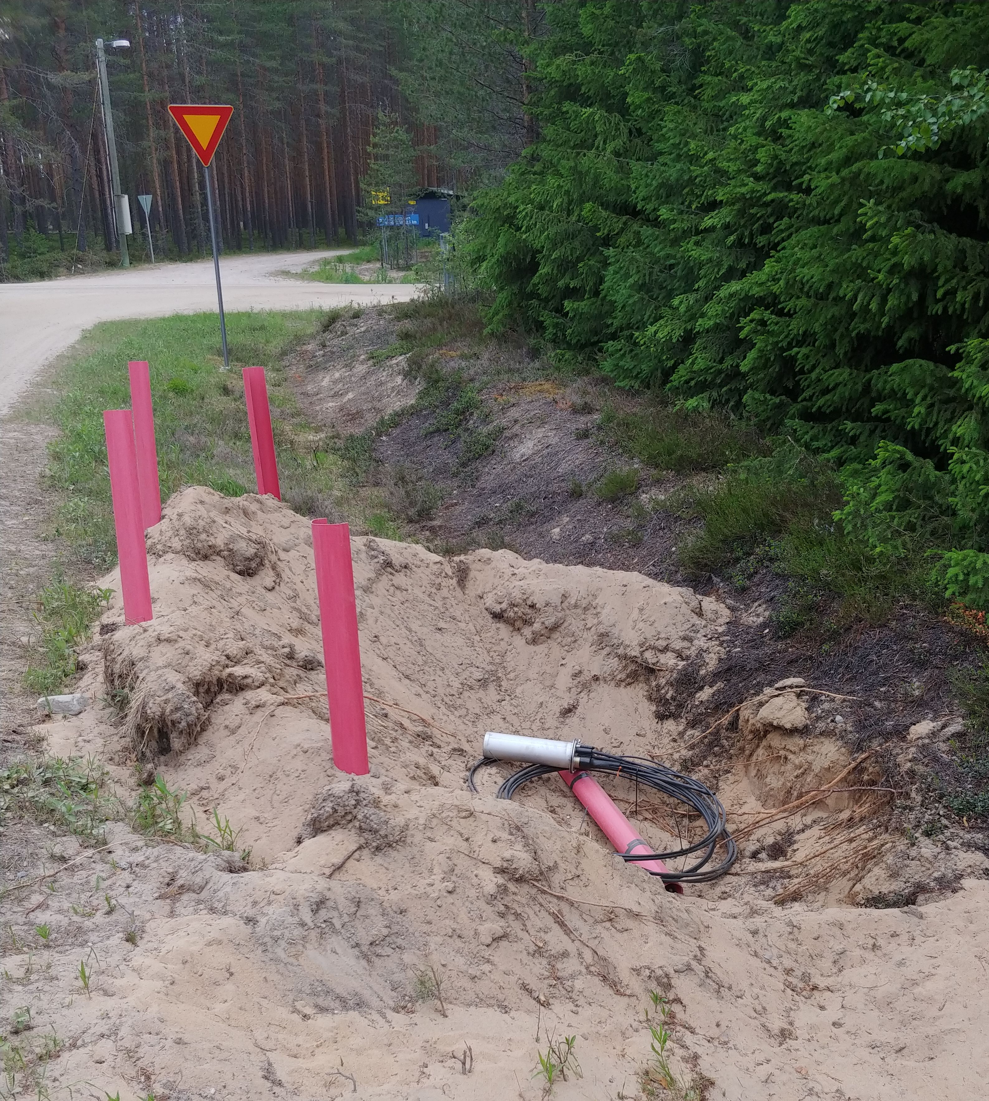 Niin lähellä mutta entistäkin kauempana. Kuvassa Muhoskuidun verkon pää tulpattuna Oulun rajalle Hangaksentien ja Viskaalintien risteyksessä.